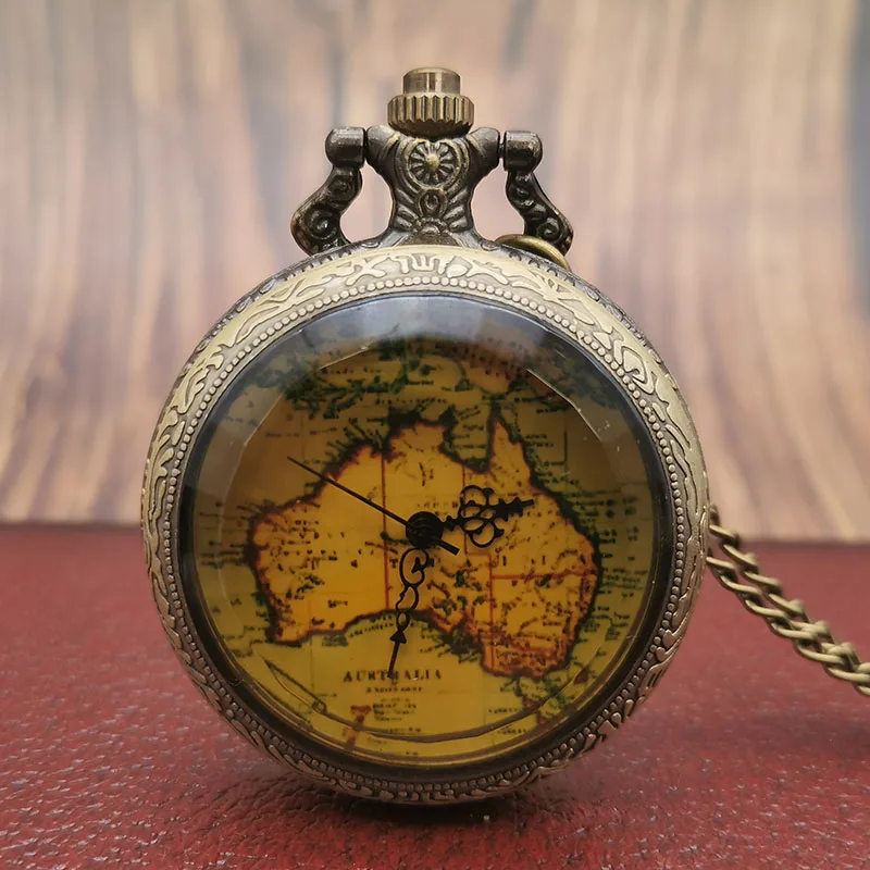 Name: Reloj de bolsillo Vintage Steampunk para hombre y mujer, diseño de mapa de Australia, cadena de reloj de bolsillo Retro, regalo, joyería, collar