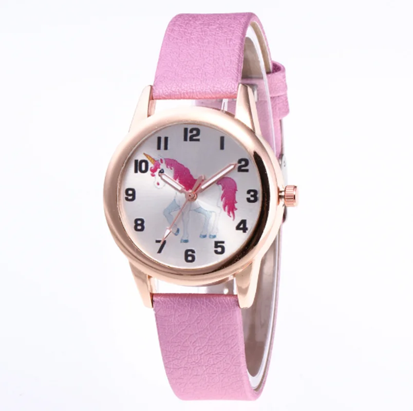 Name: Los niños de moda reloj de dibujos animados lindo unicornio reloj de pulsera con Correa de cuero clásico Digital niña niño reloj de cuarzo