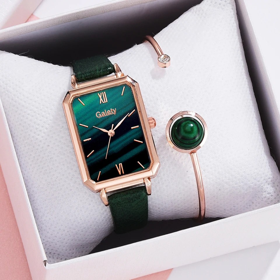 Name: Relojes elegantes con correa de cuero para Mujer, pulsera de cuarzo a la moda, conjunto de negocios, 2 uds., envío directo