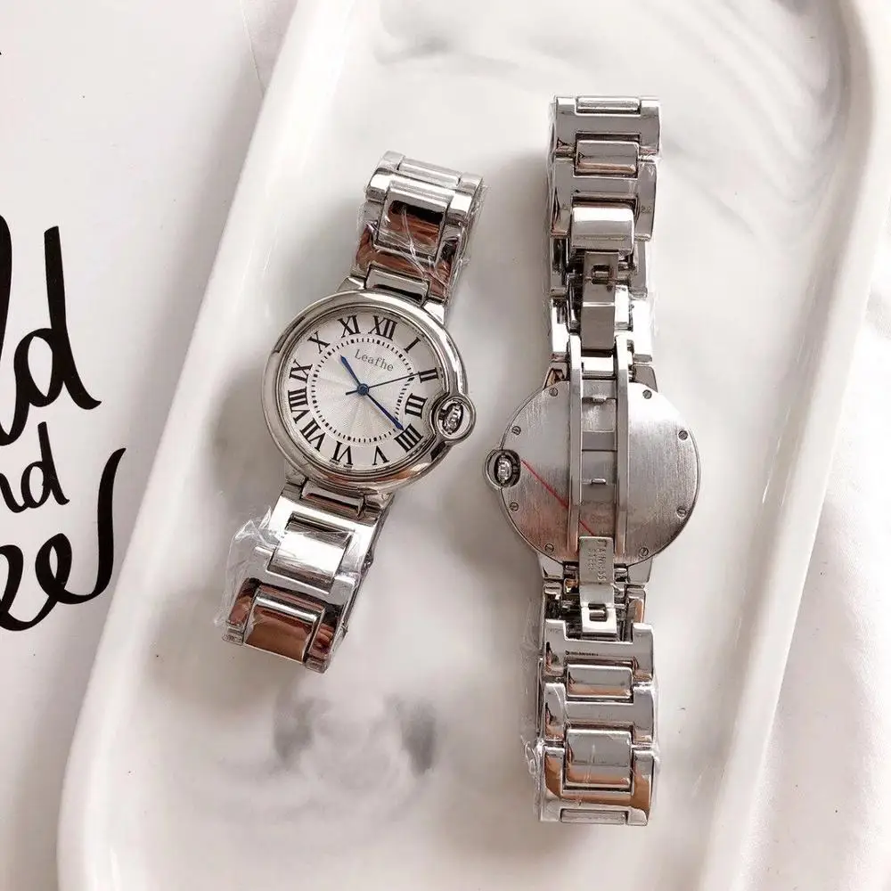 Name: Reloj de cuarzo con botón azul para mujer, accesorio de marca de acero inoxidable, a la moda, para regalo de vacaciones, primera elección